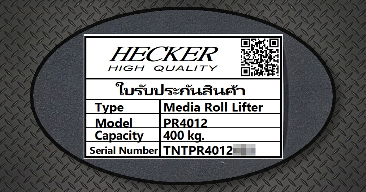 จะบอกถึงชื่อสินค้า รุ่น การรับน้ำหนัก และหมายเลขของสินค้า สำหรับการอ้างอิงการรับประกันสินค้า โดยในใบรับประกันมี QR code สามารถใช้สแกนเป็นช่องทางในการติดต่อกับทางบริษัทเพื่อใช้ในการแจ้งซ่อมสินค้า